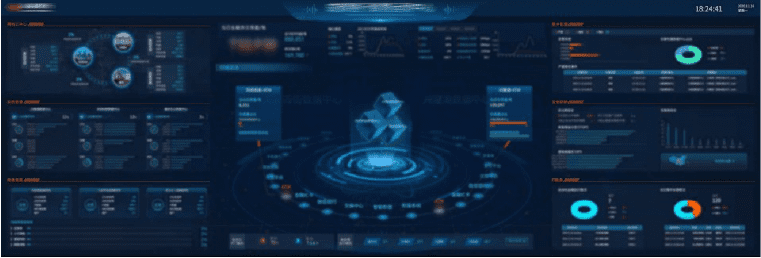 作為該銀行的智慧運營中心,實時展示核心業(yè)務(wù)、雙活架構(gòu)、生產(chǎn)操作、兩地三中心、系統(tǒng)資源、網(wǎng)絡(luò)資源、集中告警、安全防護、IT服務(wù)監(jiān)控運營狀態(tài)